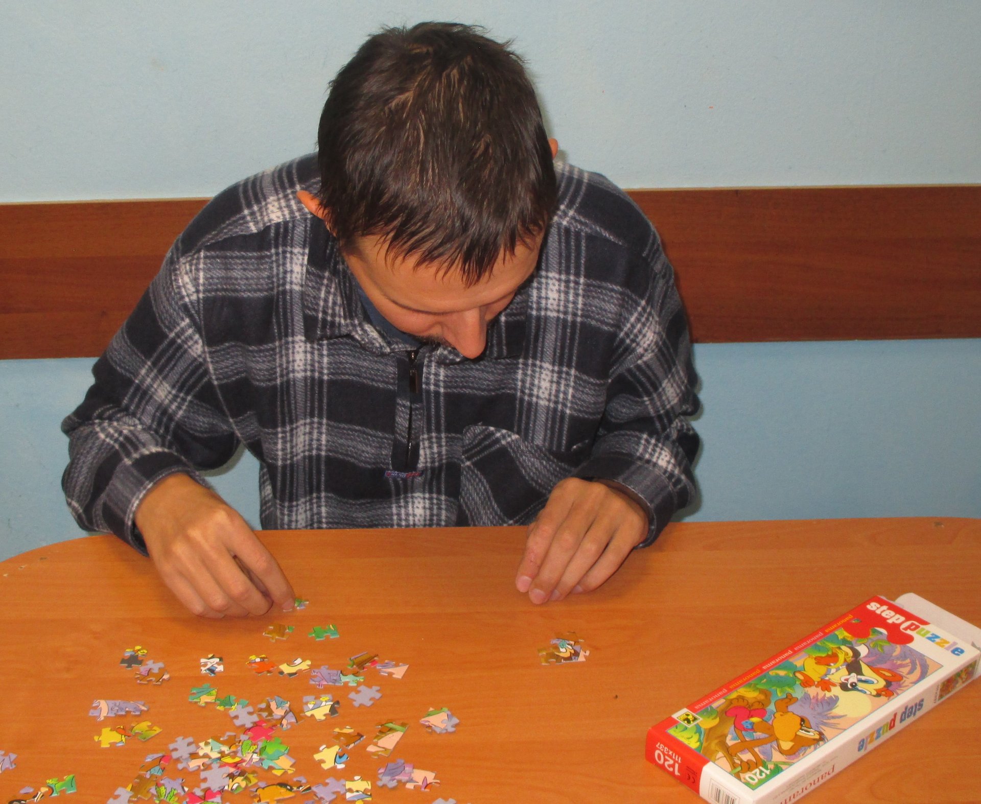 20 ноября в Новлянском ДИ получатели социальных услуг на творческом занятии собирали пазлы. Пазл – это игра-головоломка, представляющая собой мозайку, которую требуется составить из множества фрагментов рисунка. Сбор пазл способствуют развитию мышления, памяти, воображения, а также развивает мелкую моторику руки.